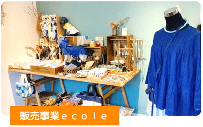 就労支援事業所での手作り雑貨・服の販売・ハンドメイドアクセサリー・布雑貨などなど。販売業務の一部(手作り雑貨の製作・商品管理、出荷作業等)を就労支援事業所 エコールのメンバーに協力していただいております。